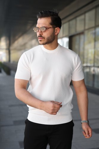 Erkek Bisiklet Yaka Petek Dokulu Kısa Kollu Triko Tişört