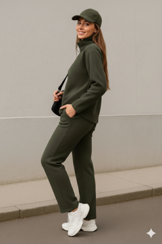 • Kadın balıkçı yaka fermuar detay polar sweat ve pantolon ikili takım