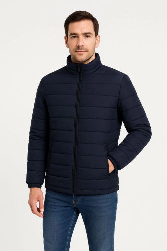 • Erkek Bomber Mont Ceket Su İtici Kumaş Kapitone Astarlı Fermuarlı Kışlık Lacivert