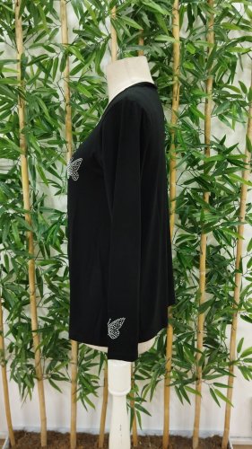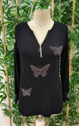 • Kadın uzun kollu önden fermuarlı taşlı kelebek desenli viskon bluz