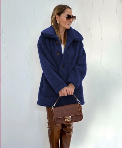 • Kadın uzun kollu yakalı önden düğmeli welsoft kaban