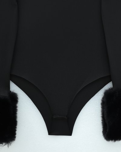 • Kolu Kürklü Yarım Boğazlı Çıtçıtlı Zıbın Bluz Siyah