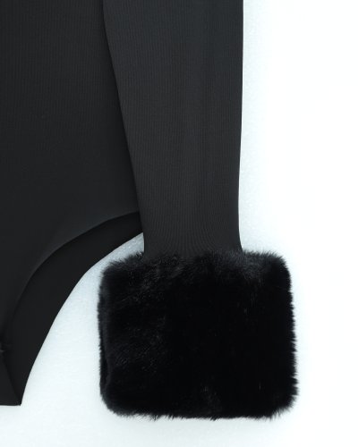 Kolu Kürklü Yarım Boğazlı Çıtçıtlı Zıbın Bluz Siyah
