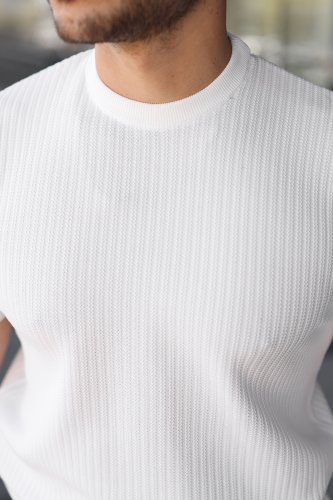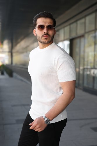 Erkek Bisiklet Yaka Petek Dokulu Kısa Kollu Triko Tişört