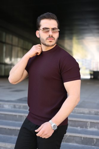 Erkek Bisiklet Yaka Petek Dokulu Kısa Kollu Triko Tişört