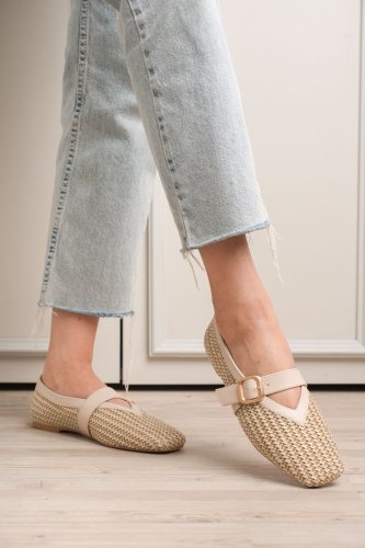 • Ponti Bej Cilt Hasır Detaylı Babet Ayakkabı