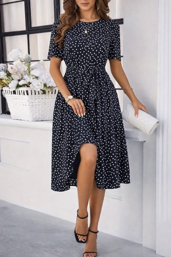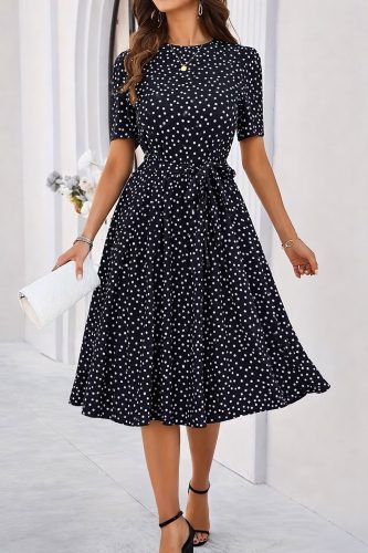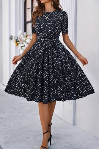 • Kadın kısa kollu bisiklet yakalı puantiyeli kısa süprem elbise