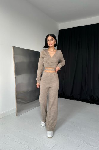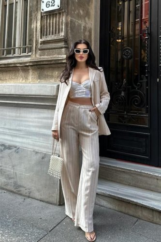 Mavi Leopar Desenli Ceket Ve Pantolon Keten Takım