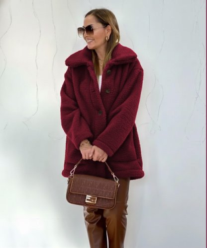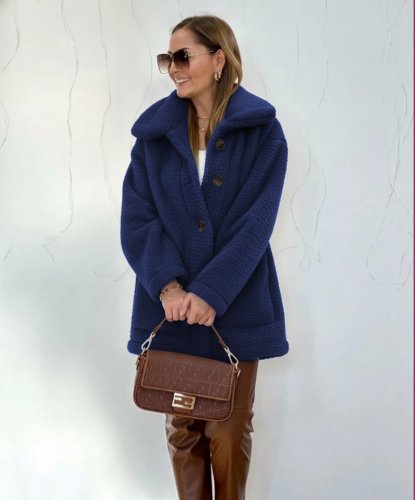 Kadın uzun kollu yakalı önden düğmeli welsoft kaban